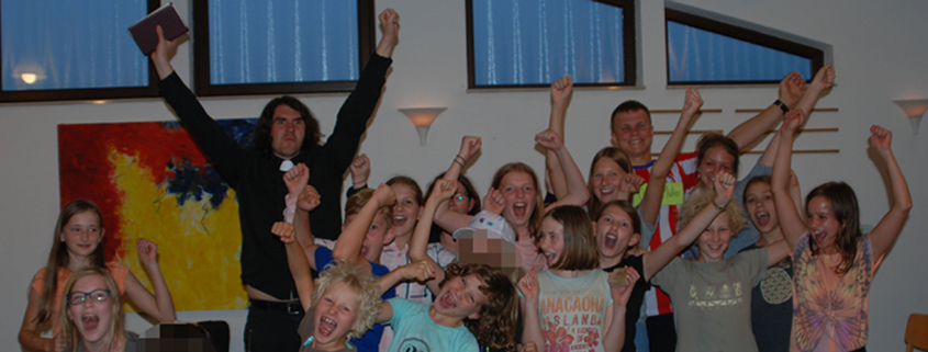 Wir übernachten auf unseren Isomatten in unseren kuschligen Schlafsäcken im Gemeindehaus. Für leckeres Essen werden unsere Köch*innen sorgen. Der Fußballkicker und die Tischtennisplatte stehen schon bereit. Draußen gibt es eine große Spiel- und Fußballwiese, eine Feuerstelle und einen tollen Spielplatz. Ob am Lagerfeuer, bei coolen Geländespielen oder einem Ausflug, es warten eine Menge Spiel und Spaß auf dich. Gemeinsam wollen wir Gott und uns besser kennenlernen und spannende Geschichten aus der Bibel hören.